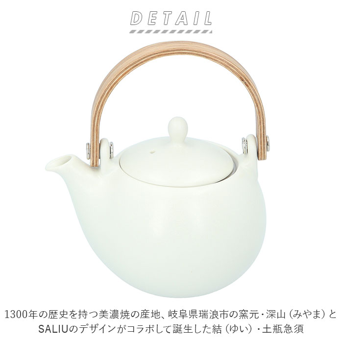 ・1300年の歴史を持つ美濃焼の産地、岐阜県瑞浪市の窯元・深山(みやま)と、SALIUのデザインがコラボして誕生した結(ゆい)・土瓶急須。
