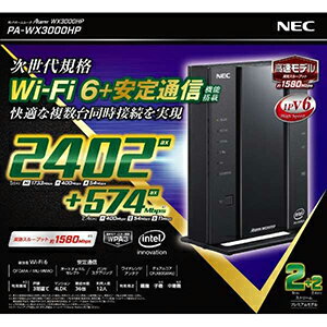 【スペック】●型式:PAWX3000HP(ブラ(PA-WX3000HP)●JANコード:4550161036067●本体サイズ(幅×高さ×奥行)mm:48(W)×129.5(D)×170(H)mm●本体重量:約700g●利用間取り目安:〜4LDK/3階建●接続台数:36台●無線通信速度11ax:最大2402Mbps11ac:最大1733Mbps11n:(2.4GHz/5GHz)最大400Mbps11a:最大54Mbps11g:最大54Mbps11b:最大11Mbps●無線規格:Wi−Fi 6(ax)/ac/n/a/g/b●LANポート数:4ポート●LANポート規格:1000BASE−T/100BASE−TX(Auto MDI/MDI−X対応)●インターフェース:WANポート(RJ−45)×1、LANポート(RJ−45)×4●対応機種[接続可能機器条件][Atermシリーズ対応無線LAN子機][Atermシリーズ対応無線LAN親機/中継専用機]はメーカーホームページをご確認ください。