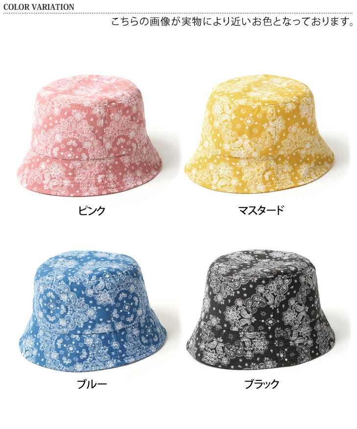 ●ペイズリー柄がコーデのアクセントになる、アウトドアシーンやカジュアルスタイルにピッタリなバケットハット ■生産:韓国製 素材 コットン100% カラー ピンク(ややくすんだ濃いめのピンク色)マスタード(ややくすんだ黄色)ブルー(やや濃いめの青色)ブラック(標準的な黒色) サイズ(cm) 頭周り 高さ つば 重さ(g) - 約57 8 5.5 42 上記サイズ表はスタッフが採寸し、製品の実寸を掲載しております。